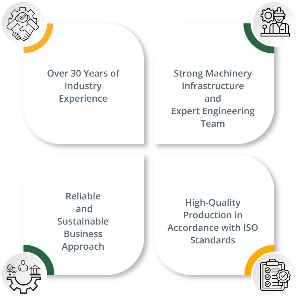 Deneyimli kadromuz, kalite odaklı üretim anlayışımız ve uluslararası standartlara uygun çalışma disiplinimizle fark yaratıyoruz.