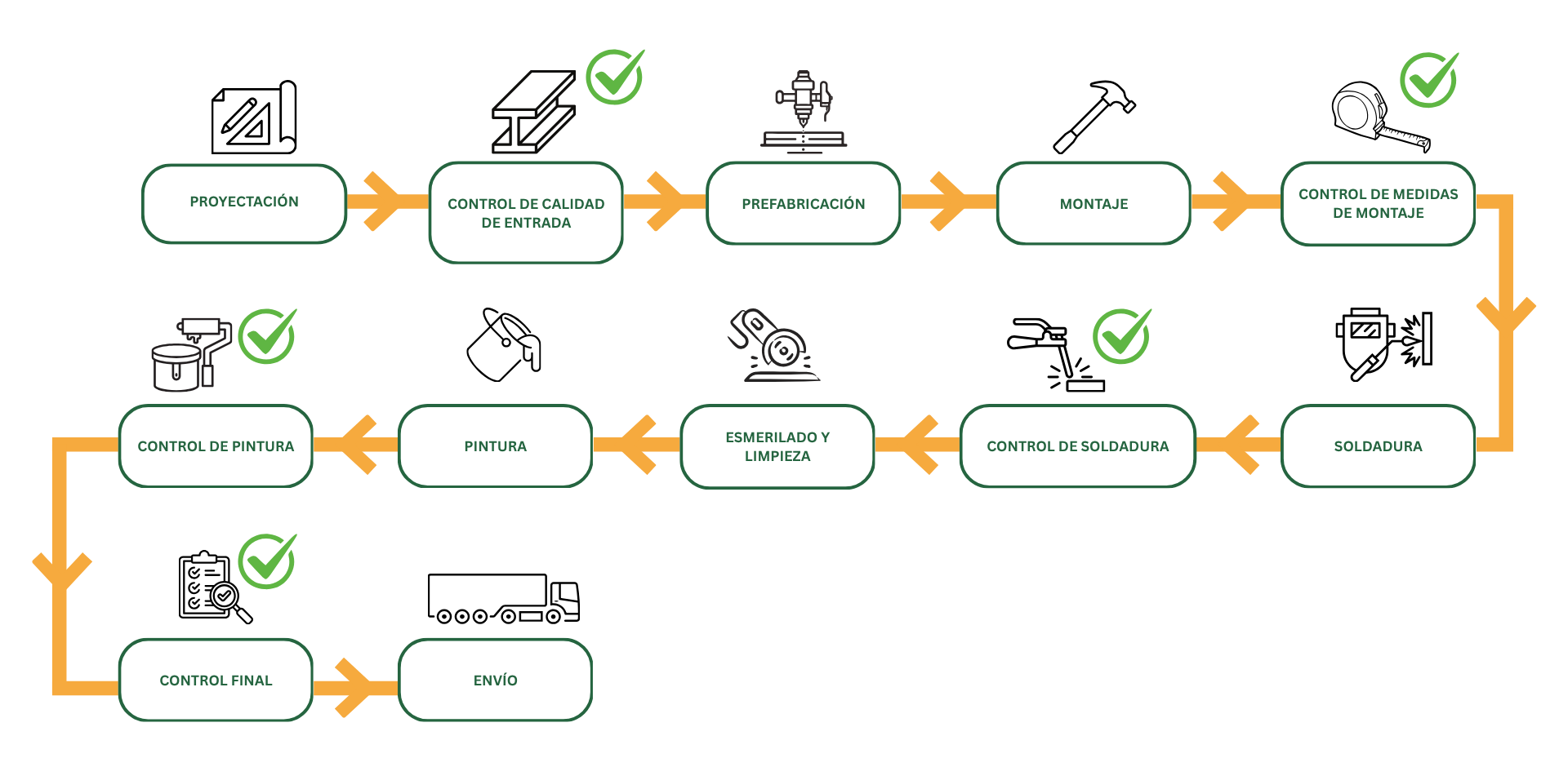 En nuestras instalaciones de 9.000 m², contamos con una sólida infraestructura de producción, con 5.000 m² de área cubierta y 4.000 m² de área abierta de fabricación. Con una capacidad anual de producción de 10.000 toneladas de estructuras de acero, ofrecemos servicios conforme a estándares internacionales. Gestionamos cada etapa del proceso de fabricación con precisión, gracias a nuestro moderno parque de maquinaria y a nuestro equipo experimentado.