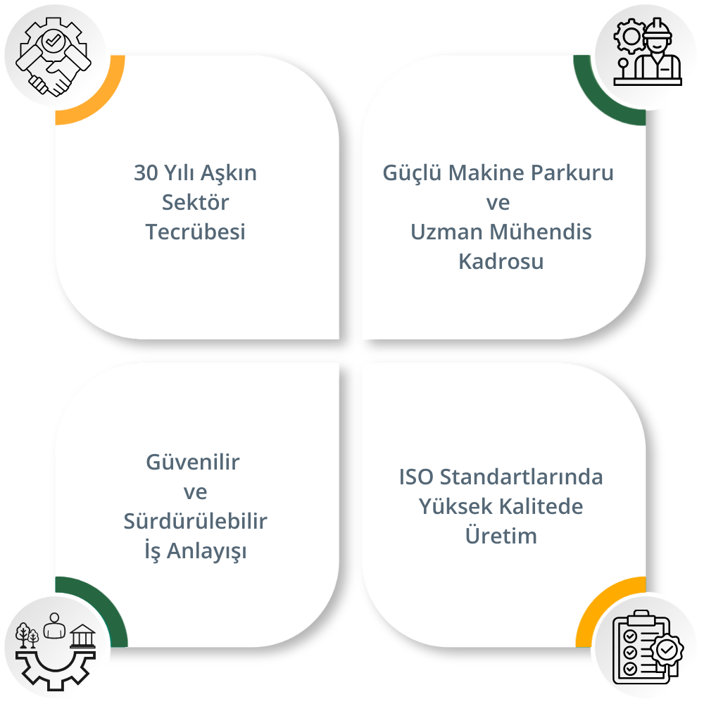Deneyimli kadromuz, kalite odaklı üretim anlayışımız ve uluslararası standartlara uygun çalışma disiplinimizle fark yaratıyoruz.
