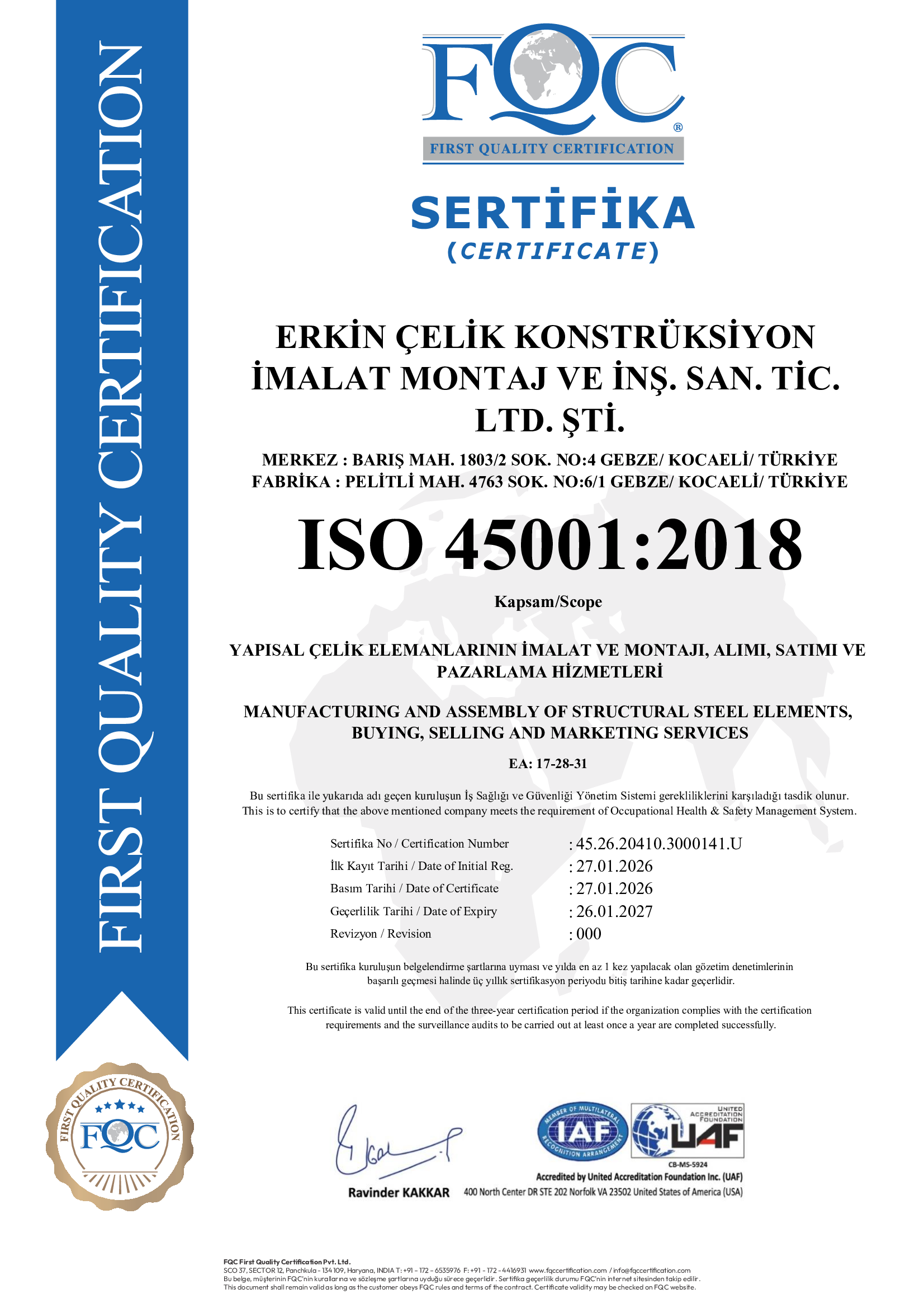 Çağımızda çelik konstrüksiyon yapılar, ekonomik maliyet ve dayanıklılığıyla en çok tercih edilen yapılardır. Firmamız, çelik konstrüksiyon projelendirme, imalat ve montajında tecrübesiyle yurt içi ve yurt dışı projelerde hizmet vermektedir.